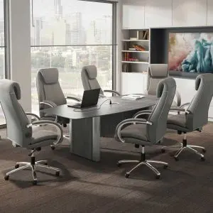 Boat Shape Meeting Table, Silver Accent Base 8, 10 or 12 feet long