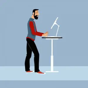 A stand up desk allows the user to alternate between a traditional seated position with an office chair and a standing position with no chair or with a tall stool or drafting chair. There are 4 kinds of stand-up desks. We’ll explore the advantages and disadvantages of each.