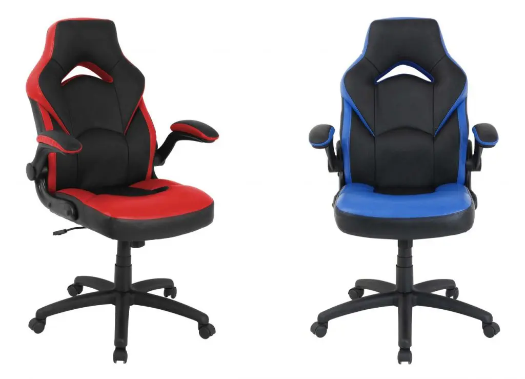 If the dad in your life enjoys computer gaming, our new high back bucket seat style gaming chair would make a great gift. Available in blue or red, it features a race car style seat, flip up arms, tilt tension and a height adjustable seat.
