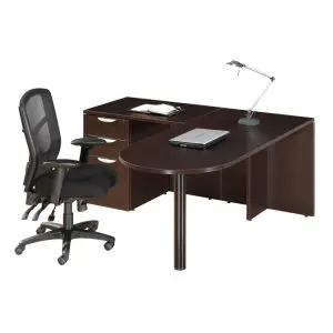 Standard office desks offer a traditional work space and in many cases, some under-desk storage or a matching cabinet. We offer standard desks in a variety of configurations including: simple small desks with no storage, desks with filing systems, standard desks with a sit stand elevation feature and more. We have both laminate and wood veneer finishes available.