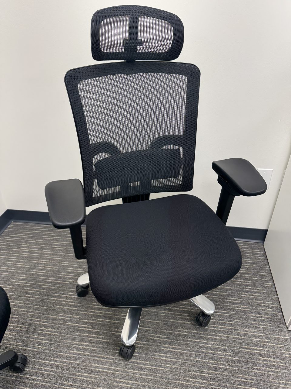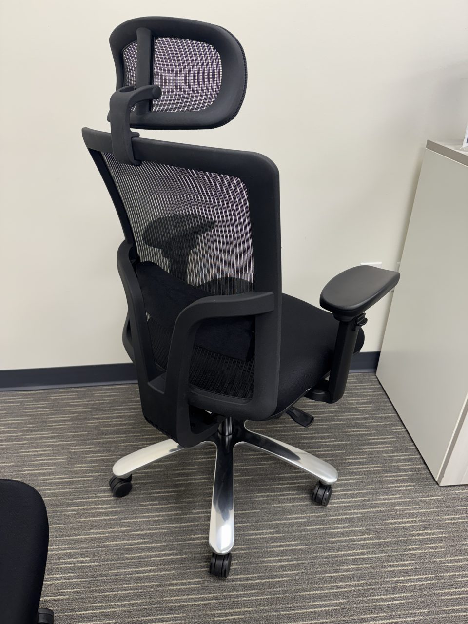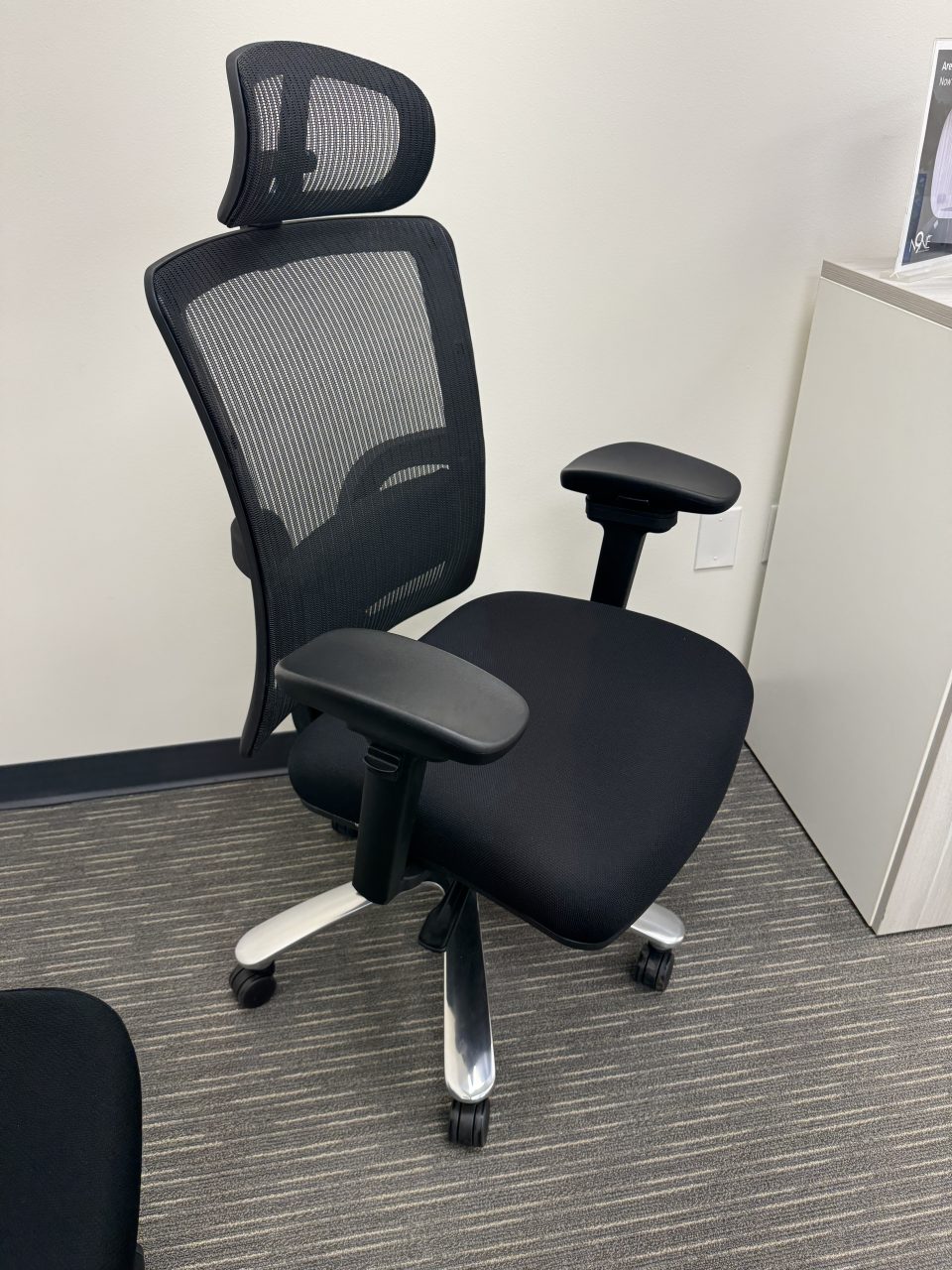 Our Big and Tall Executive Office Chair will keep you cool and comfortable all day long. The mesh back and headrest allows air to flow to your back and neck. This office chair also features the most crucial ergonomic adjustments including a seat slider, synchro-tilt, lumbar support, and pivoting and telescoping arms. The chair is black on black with a heavy duty chrome base – so your new chair will be both comfortable and stylish.