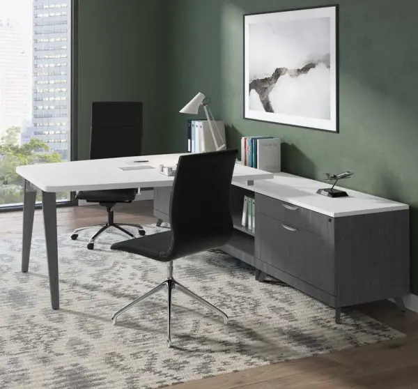 • Desk can be configured to have the return on either the right (shown) or the left side