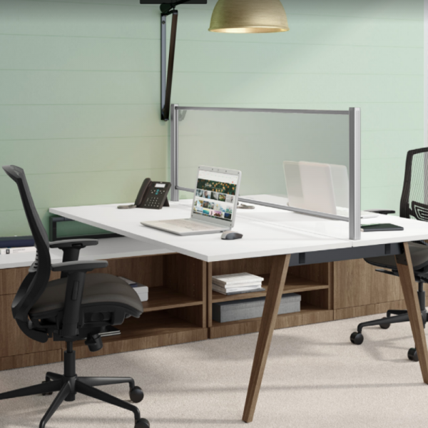 This Desk Mounted Virus Shield provides an acrylic barrier between employees. No need to purchase new office desks. These dividers can be retro-fitted to your existing workstations in most cases. Natural light can still flow through but droplets and air are obstructed.