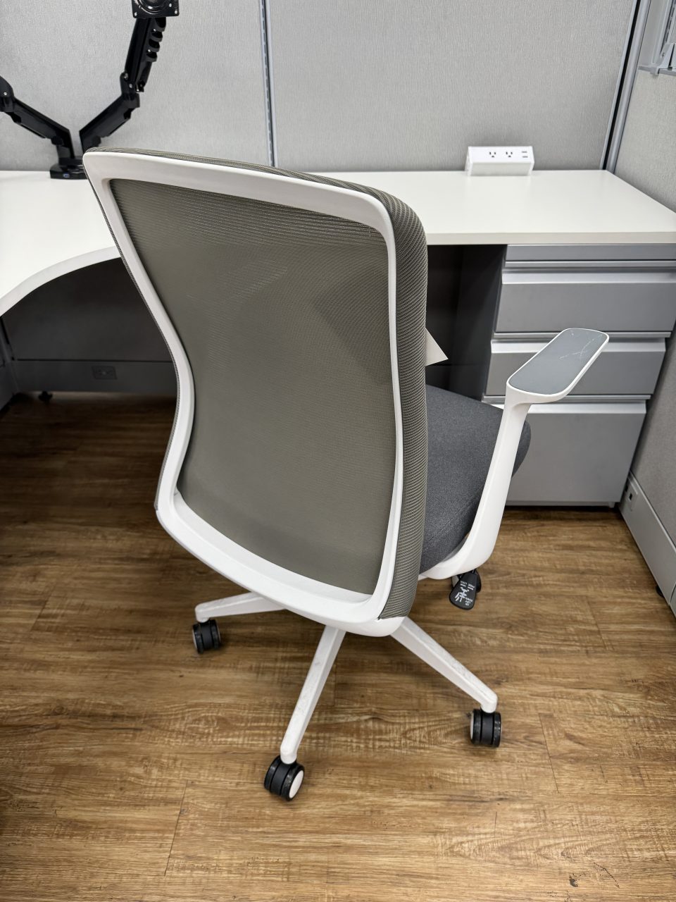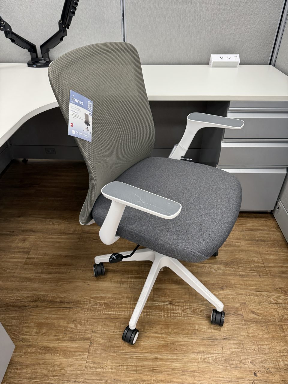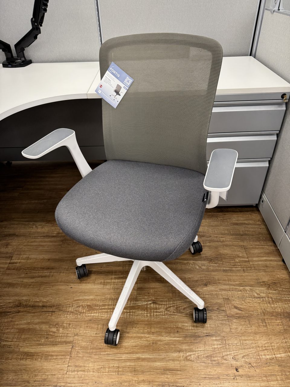 The Fortis Series offers a sleek and versatile collection of task and guest chairs, designed for modern workspaces. The task chair features height adjustability and tilt control. Fortis task chair is a mesh back task chair with unique and stylish white frame with a gray fabric seat. Pair with Fortis guest seating to complete your office.
