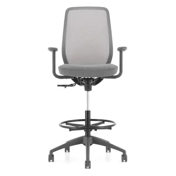 The Konfurb AX Stool combines sleek design with practical functionality. Experience extended height adjustments with the architectural gas lift and footring, ensuring comfortable sitting and perching at drafting tables, sit-stand desks or counters. Comfort is guaranteed with a depth-adjustable seat slider. The gray color complements modern interiors, adding a touch of elegance. The Konfurb AX Stool is the ideal choice for enhancing well-being in any workplace or home office.