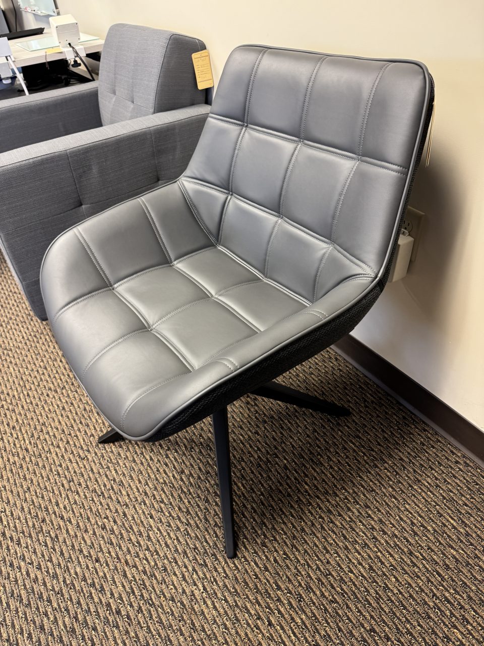 The Konfurb Neo Lounge Seating blends modern style with functional design. Featuring a 4-prong spider base with memory swivel, the seat is upholstered in charcoal PU on the front, while the back is finished in a premium textured charcoal fabric. Perfect for lounges, reception areas, collaborative spaces, the Neo chair offers a comfortable, contemporary seating option for any office environment.