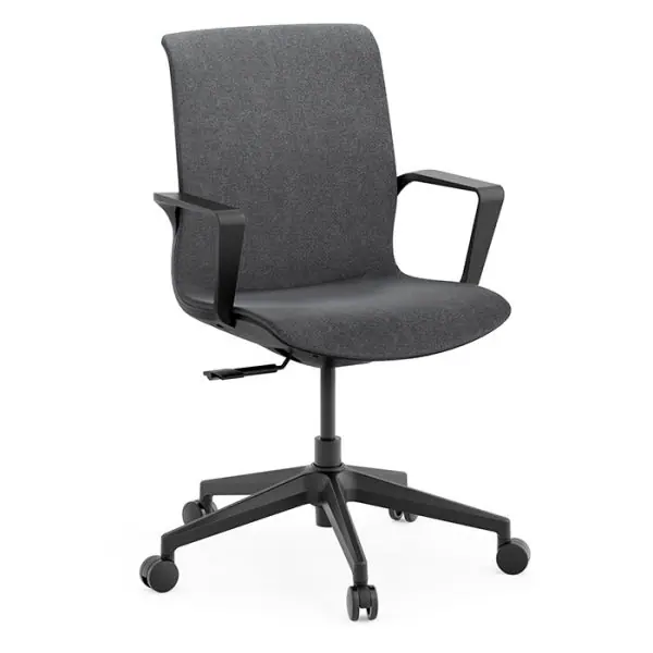 The Matrix Series combines style and practicality with a durable black base, sleek charcoal fabric seat, and a striking geometric lattice backrest. The chair is outfitted with a tilting mechanism for added comfort.
