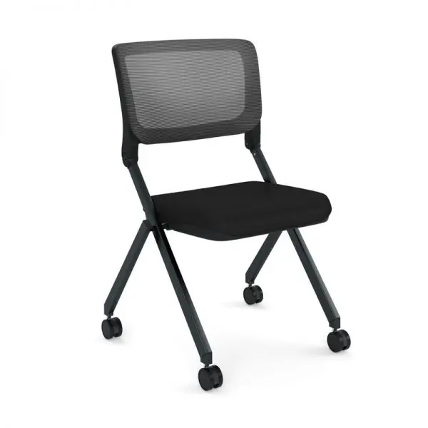 Side seating is found in boardrooms, executive offices, training rooms and even libraries. This Nesting Guest Chair – Armless is a highly affordable, built to last option for your organization. It features a mesh back to keep you cool for hours on end and the flip up seat is padded for maximum comfort. Black fabric on a black frame looks professional and is versatile with existing decor. Casters are standard for EZ set up and take down. Interested in this chair with arms? We’ve got it.