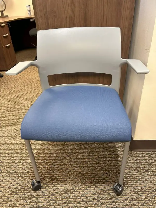 The Steelcase “Move” Guest Chair is a multipurpose seat. It can be used in a meeting or training setting, as a side chair, in a lunchroom or even as a waiting chair. These are very lightly used and ready to go. Call ahead to ensure the quantity you need is in stock.